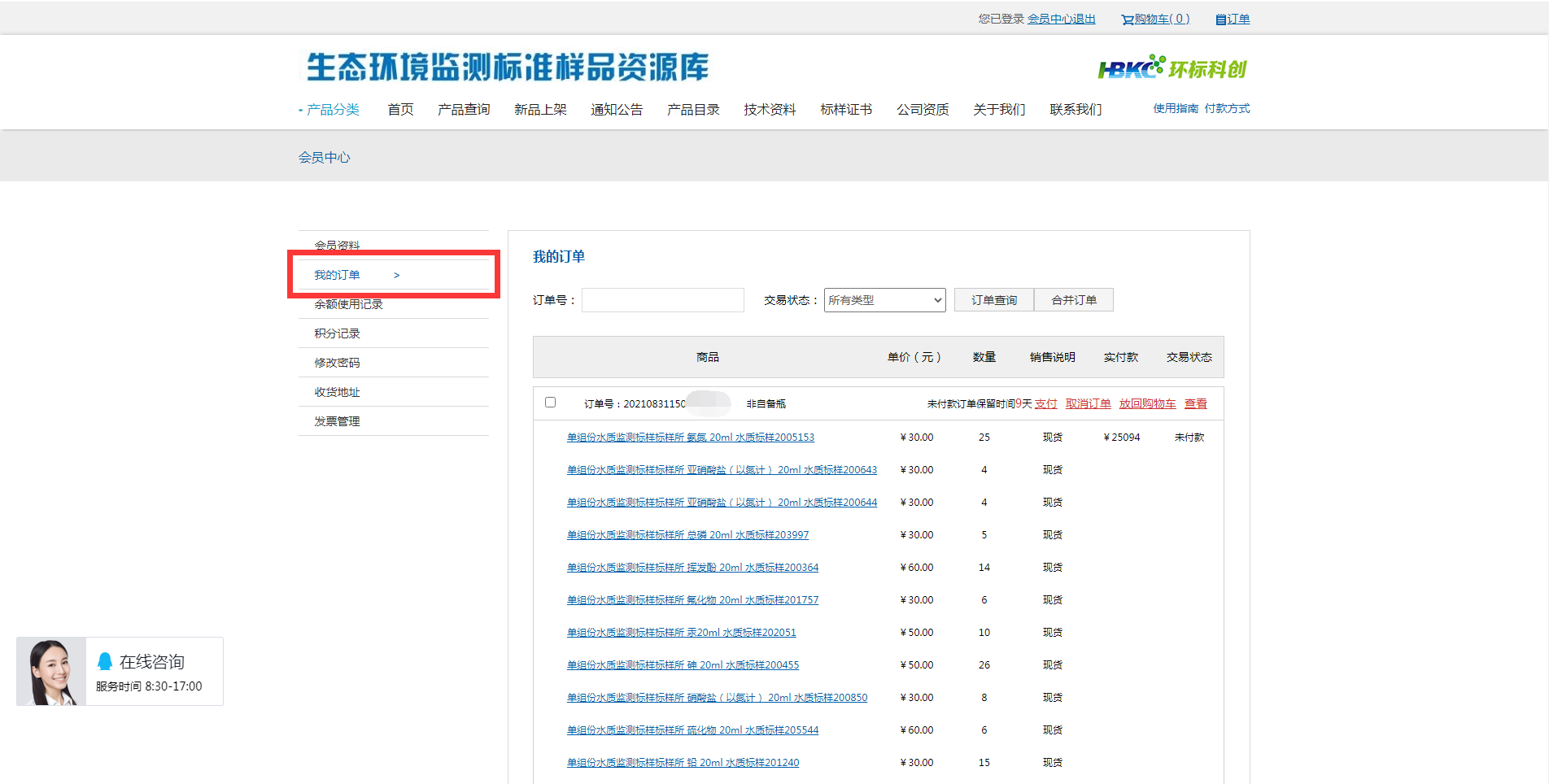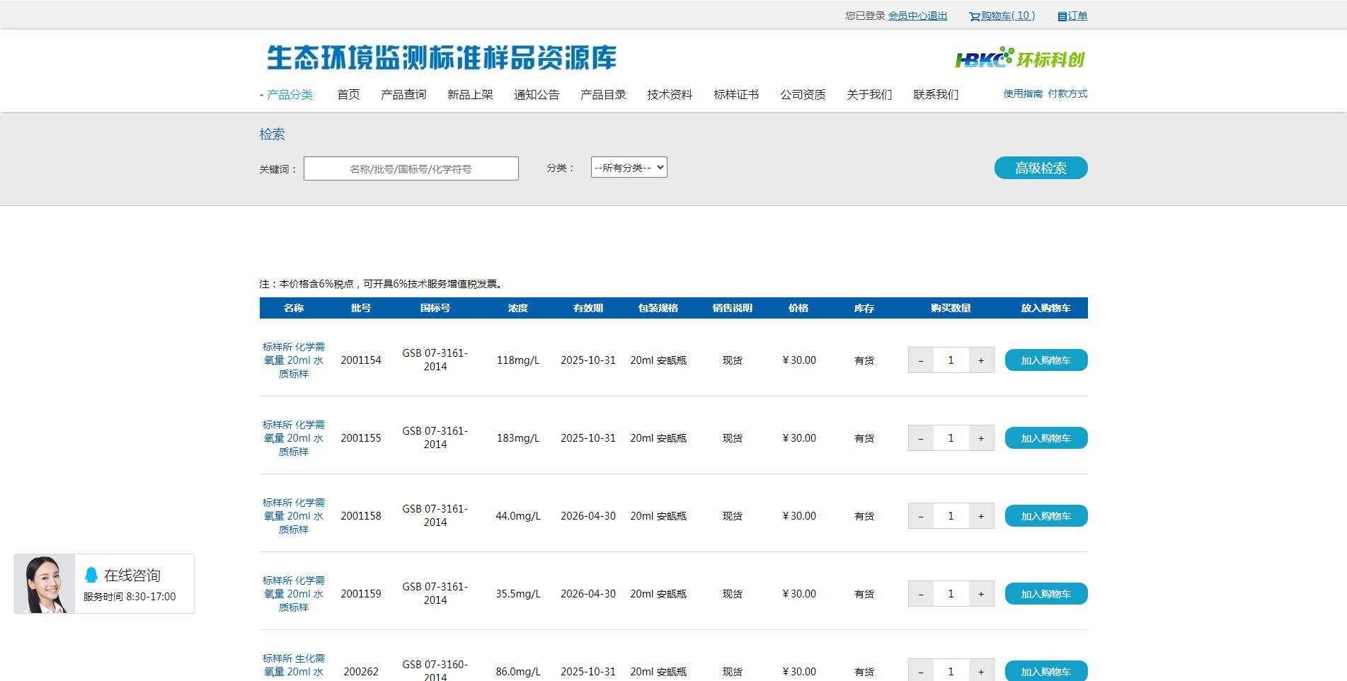提供環境標準樣品及相關產品的信息查詢、技術資料下載、在線客服交流、在線詢價處理及訂單處理等各類個性化服務。